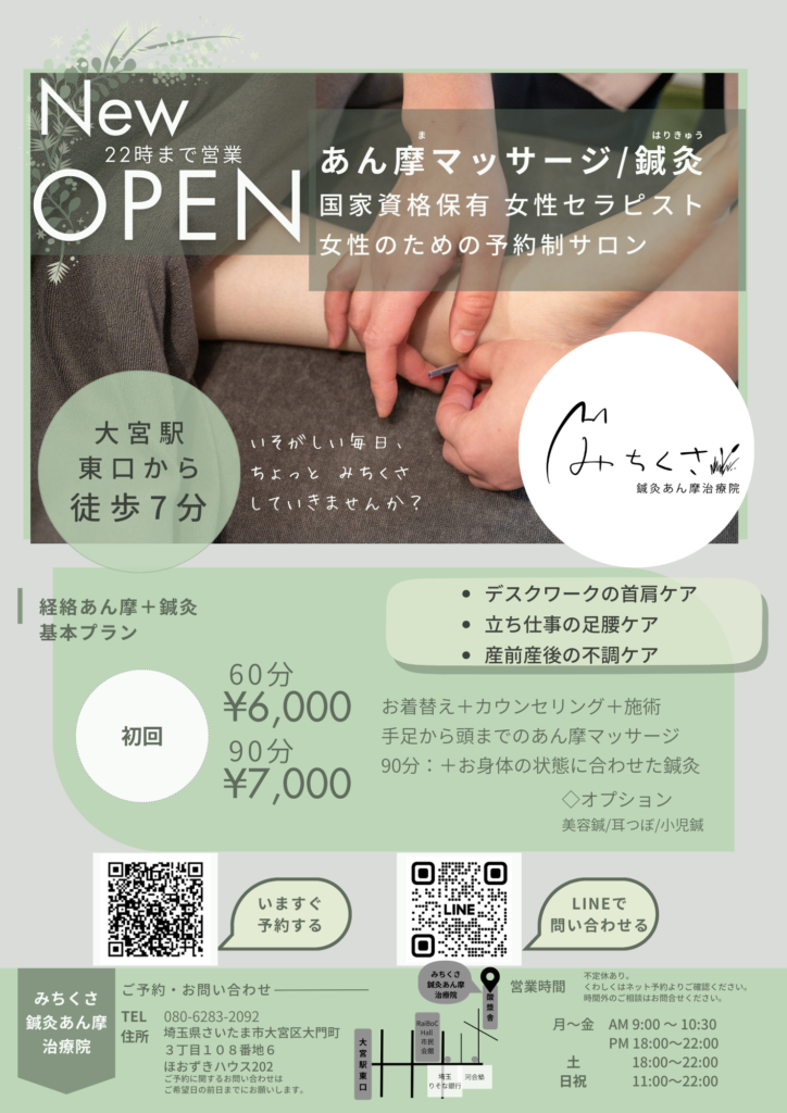 こんにちは。「みちくさ鍼灸あん摩治療院」です。